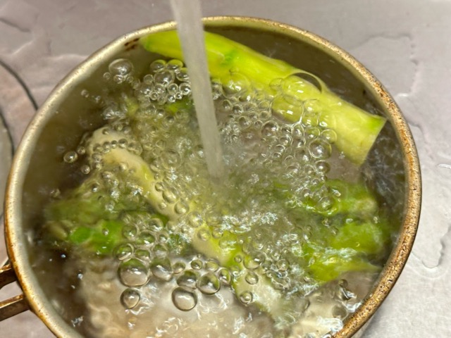 - 1を沸騰したお湯に入れ、1分ボイルし流水にとります。