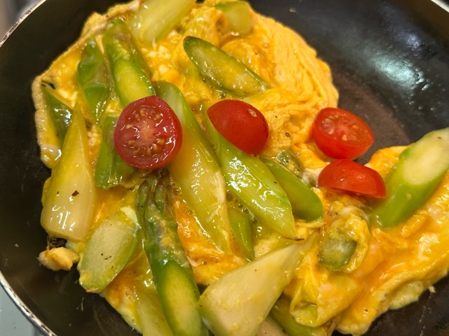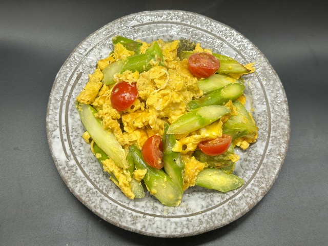 野菜料理レシピ〖極太アスパラのマヨ玉炒め〗