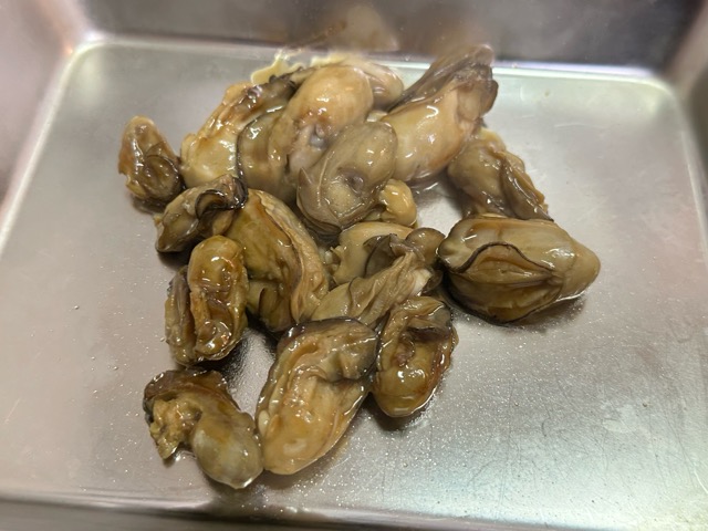 - 牡蛎を流水で良く洗い、ザルに上げ水気を切ります。
