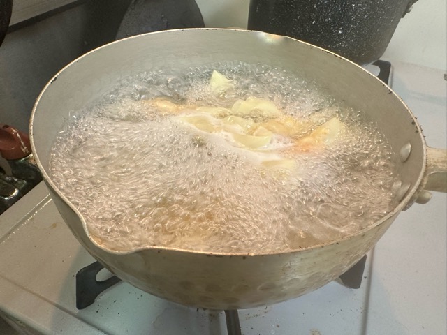 - 4を沸騰したお湯に入れ、1分30秒ボイルします。