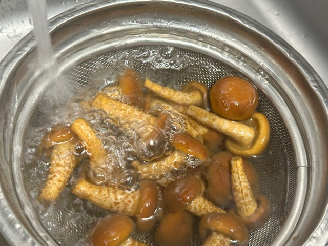 - 1のなめこを沸騰したお湯に入れ、1分ほどボイルしお湯を切ります。